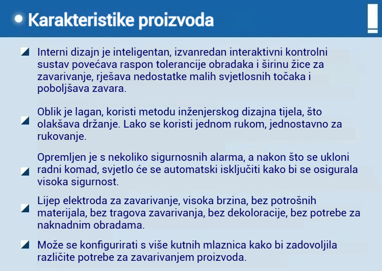 Može se ručno zavarivati, fleksibilna je, jednostavna za upotrebu i ima dugu udaljenost zavarivanja.